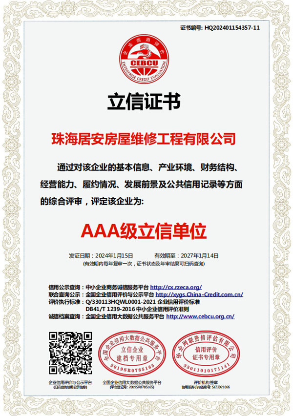 珠海居安房屋維修工程有限公司成立于2020年,是一家專注房屋維修的公司。我們擁有各類型專業(yè)人才,業(yè)務包括老舊建筑翻新改造、外墻空鼓修復、防水幕墻養(yǎng)護、外墻預置構件拆除更換、供排水管網(wǎng)改造、墻面翻新、鋼制結構建筑構建及折除,外墻清洗及裝修裝飾。